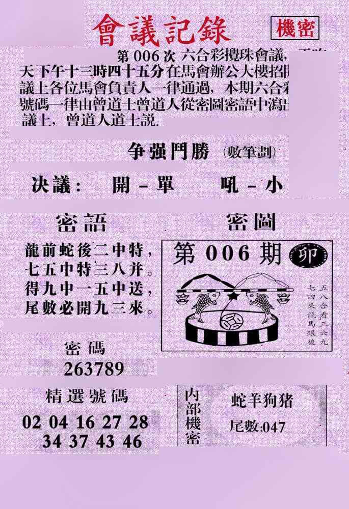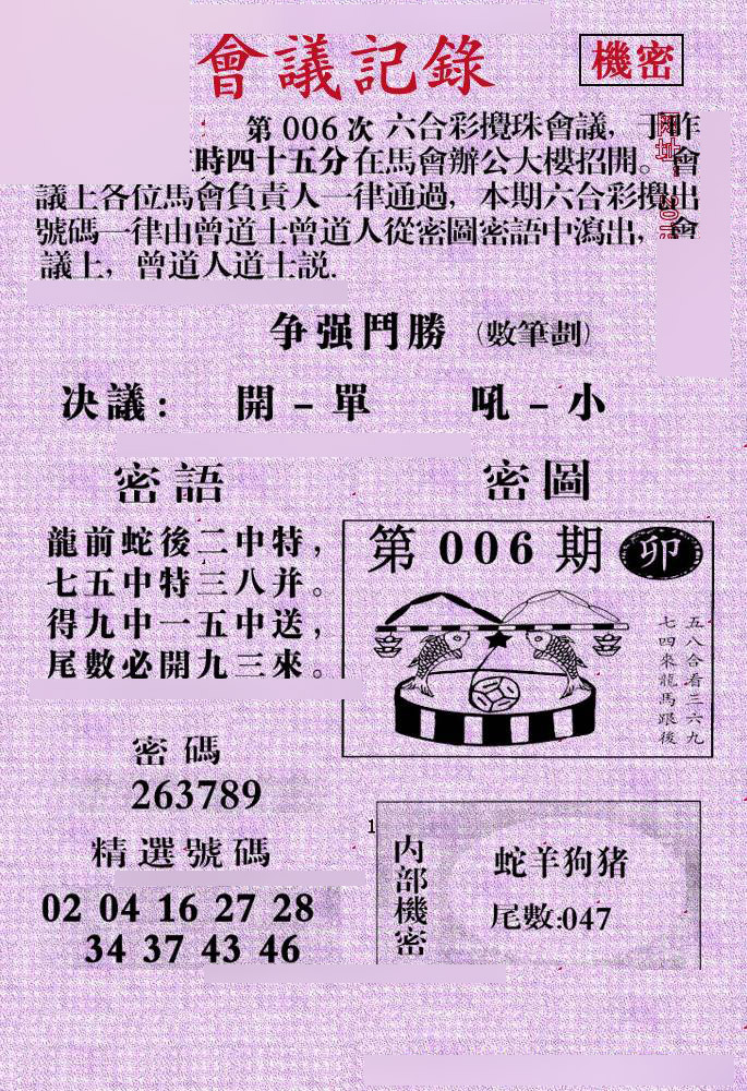【六合堂图库】合数单双: