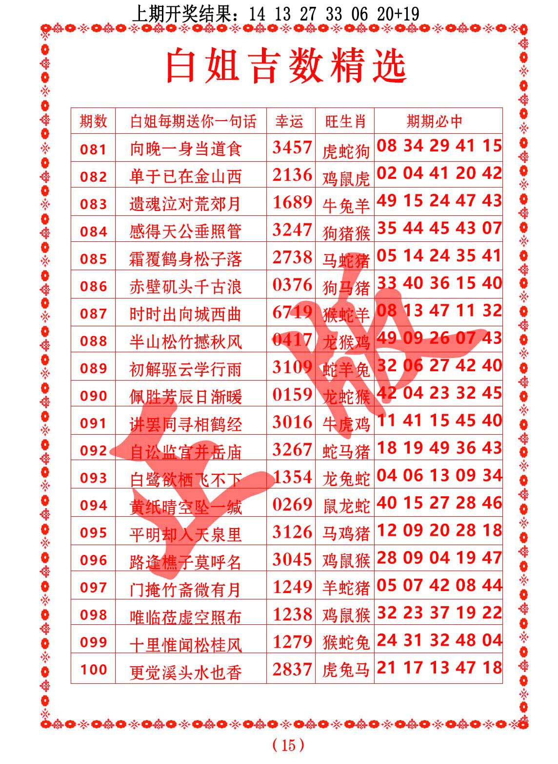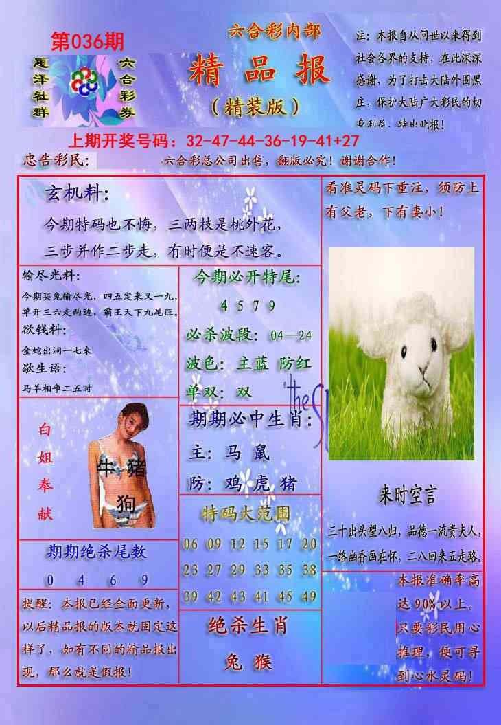 。所发布的资料属科学数理分析-开奖,走势,资料,图说,总结,均是精品资料。值得您长期跟踪。 |