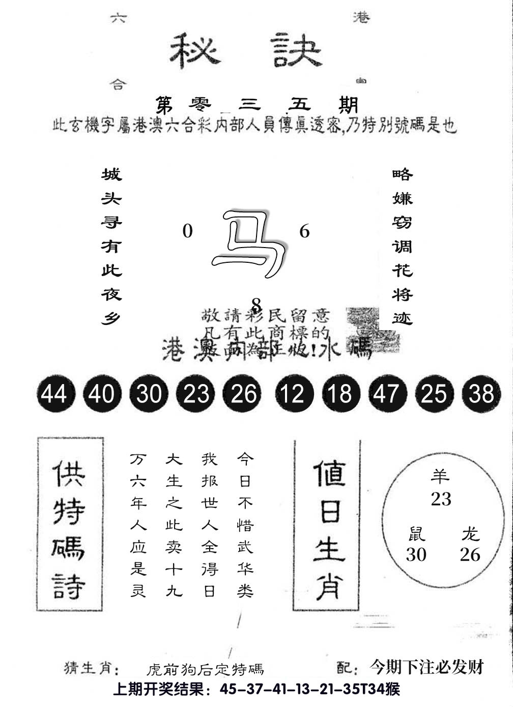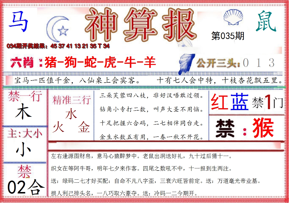07,08,15,16,29,30,37,38,45,46 马 冲 鼠 羊 冲 牛 25 26 27 28 29 30 31 32 33 34 35 36