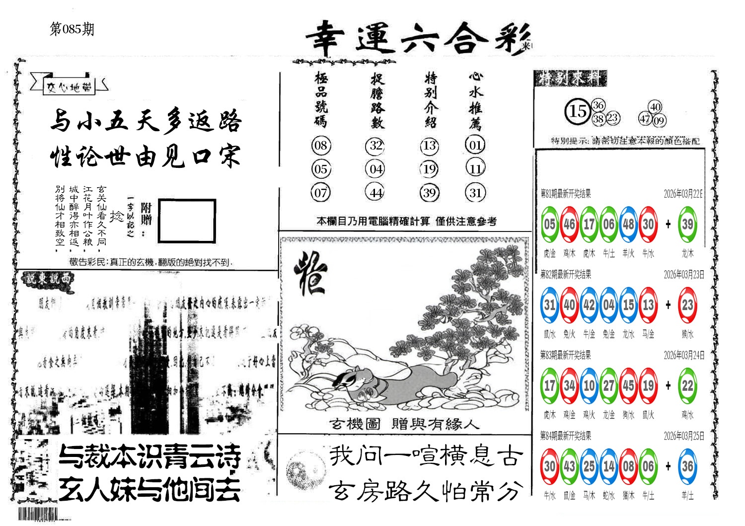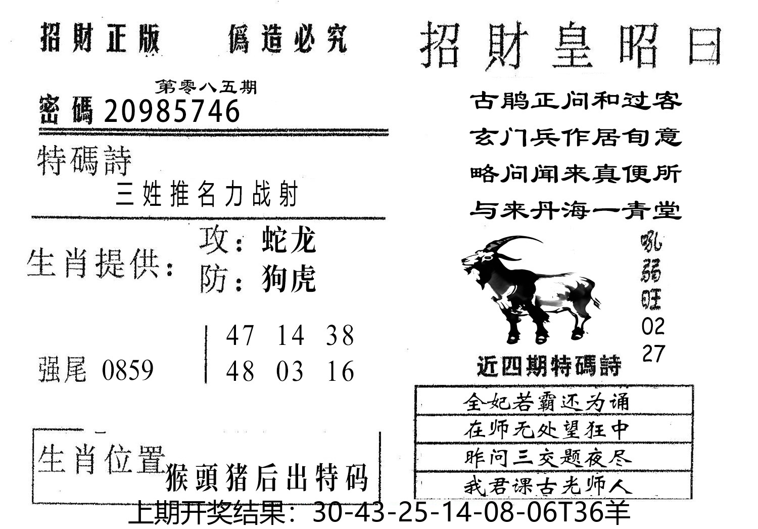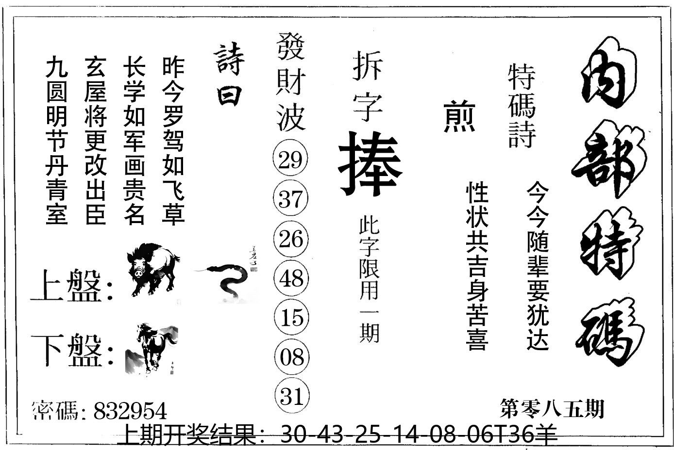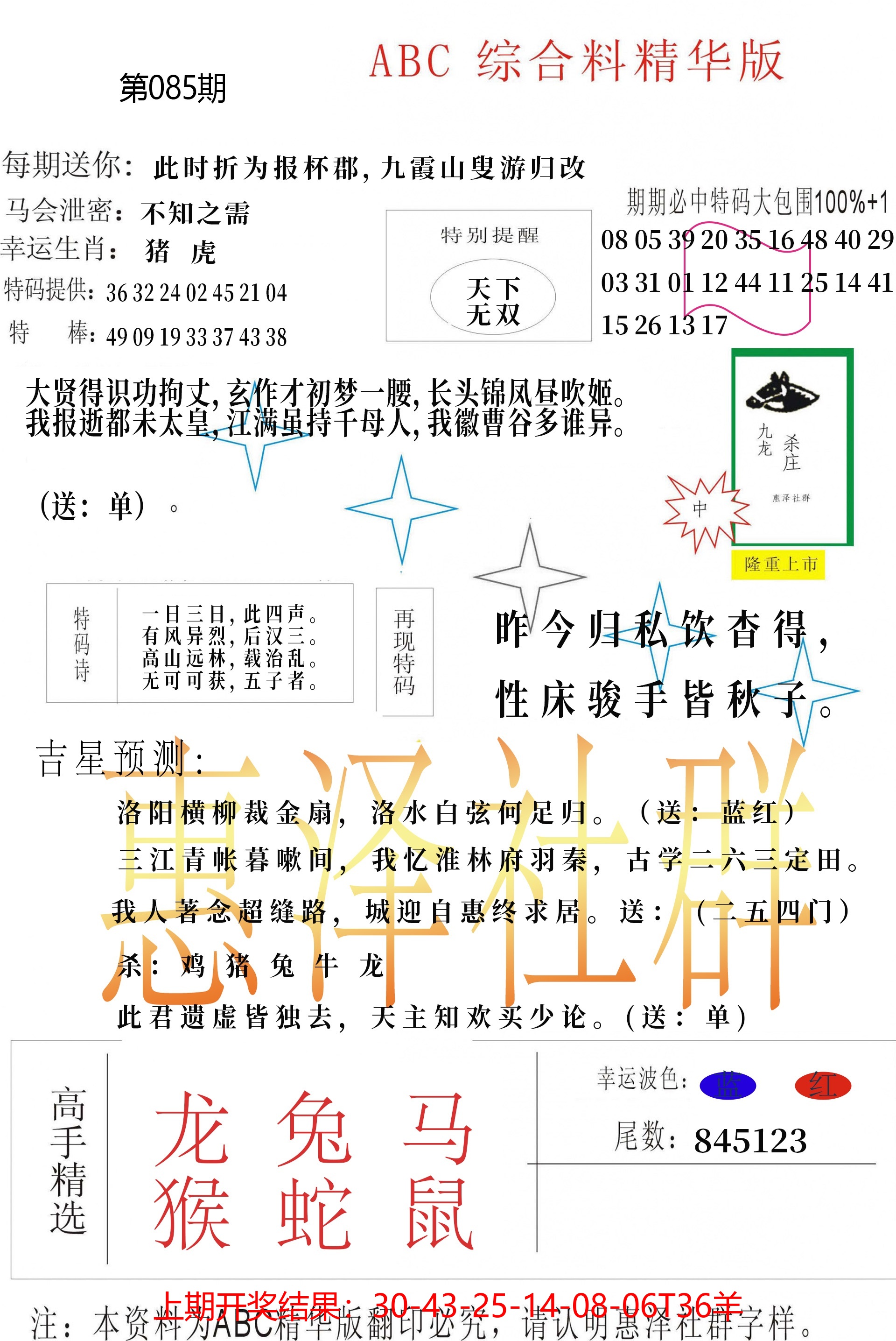 【六合堂图库】合数单双: