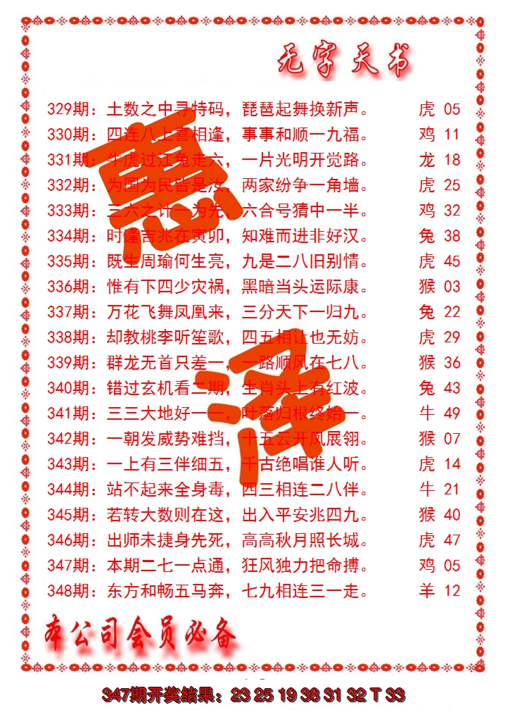【六合堂图库】2023年生肖对照表: