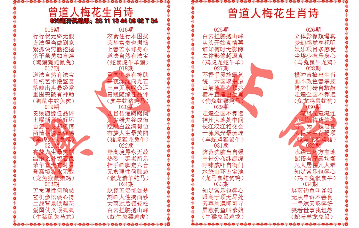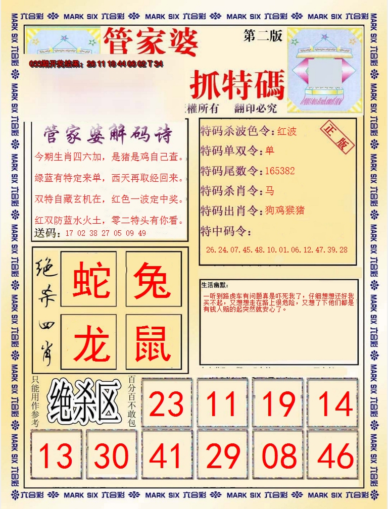 【六合堂图库】2023年生肖对照表: