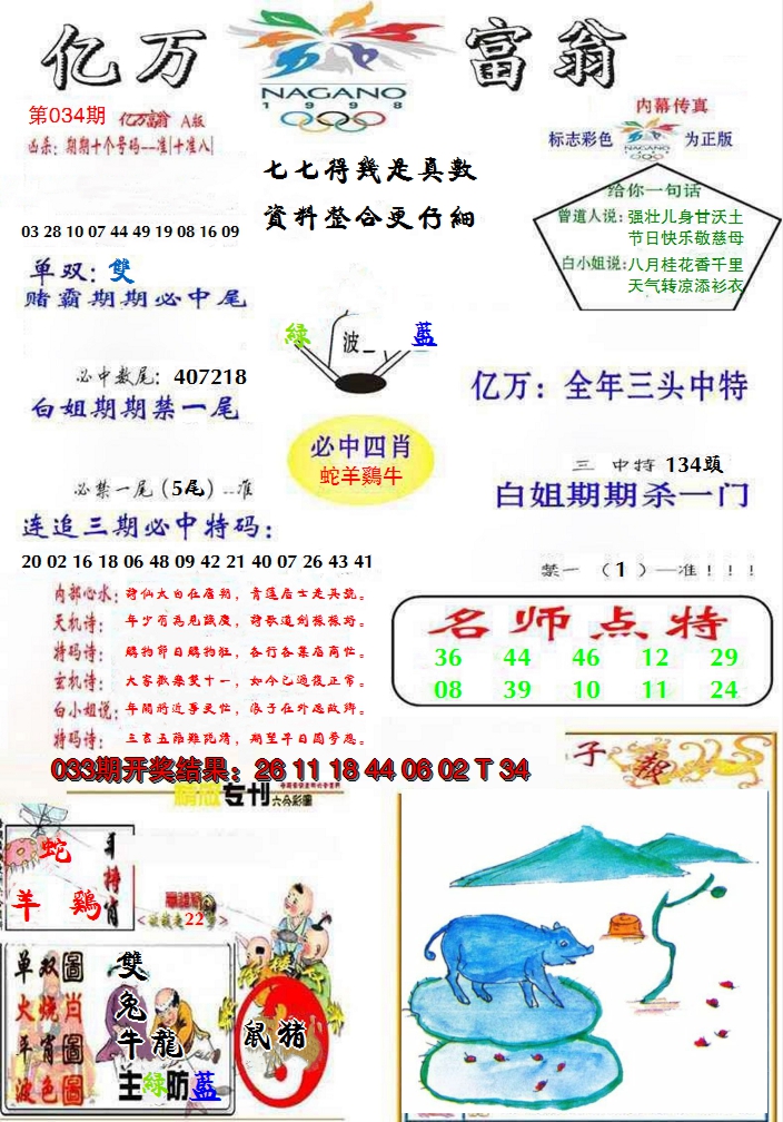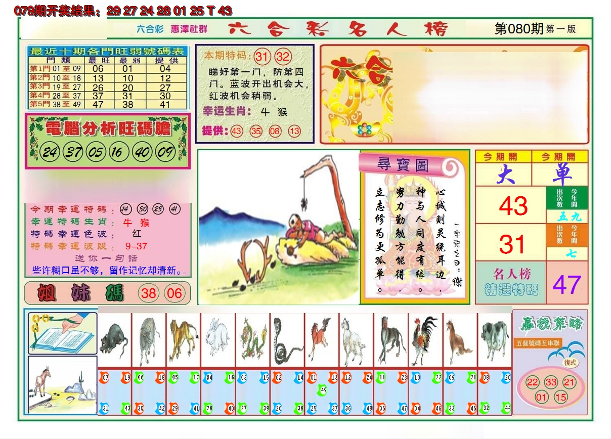 07,08,15,16,29,30,37,38,45,46 马 冲 鼠 羊 冲 牛 25 26 27 28 29 30 31 32 33 34 35 36