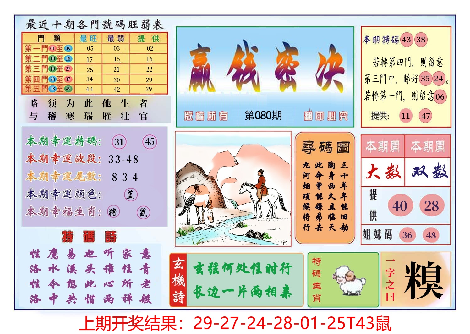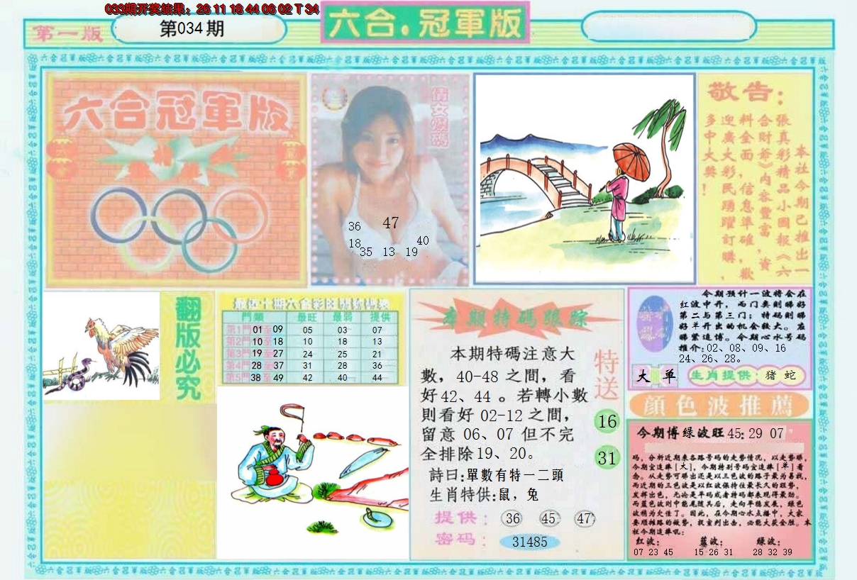 01,02,09,10,23,24,31,32,39,40 鼠 冲 马 牛 冲 羊